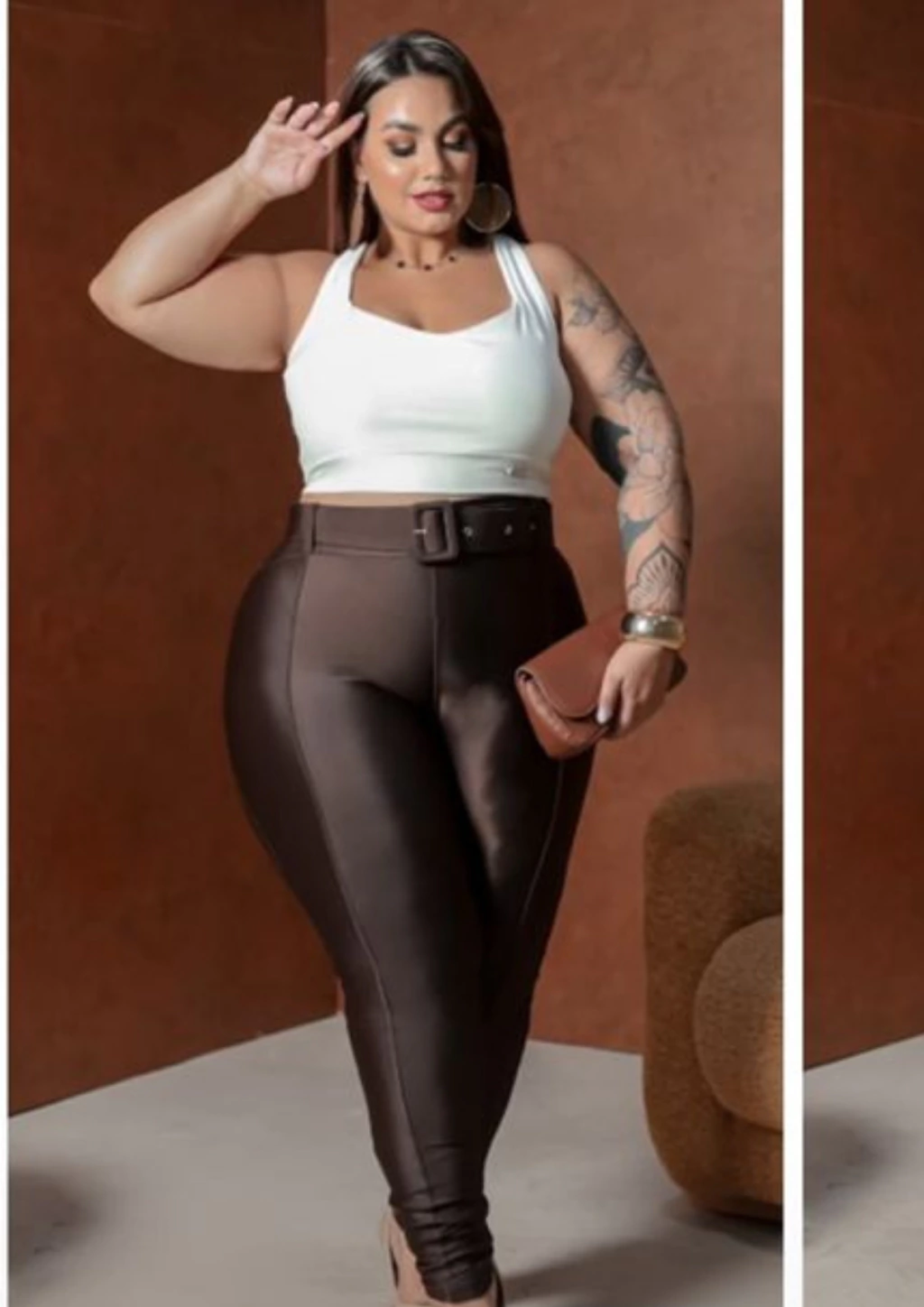 Calça confeccionda em Malha Prada que é um tecido tecnológico e sintético composto da junção do poliamida e elastano em alta densidade o que garante um ajuste perfeito e modelagem da silhueta, custura aparente em toda parte da frente, deixando o looks ainda mais estiloso, e para fechar com chave de outro acompanha um cinto para deixar o look ainda mais maravilhoso.