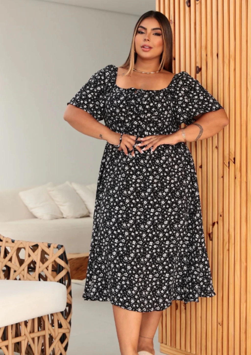 Vestido midi com decote ombro a ombro e bojo embutido, que valoriza o colo e garante sustentação com conforto. Possui lastex nas costas e cordão logo acima do busto, permitindo um ajuste perfeito ao corpo. Confeccionado em tecido leve e fluido com estampa de flores super moderna e divertida, é uma peça que une feminilidade, estilo e praticidade — ideal para quem ama um visual alegre e cheio de personalidade.